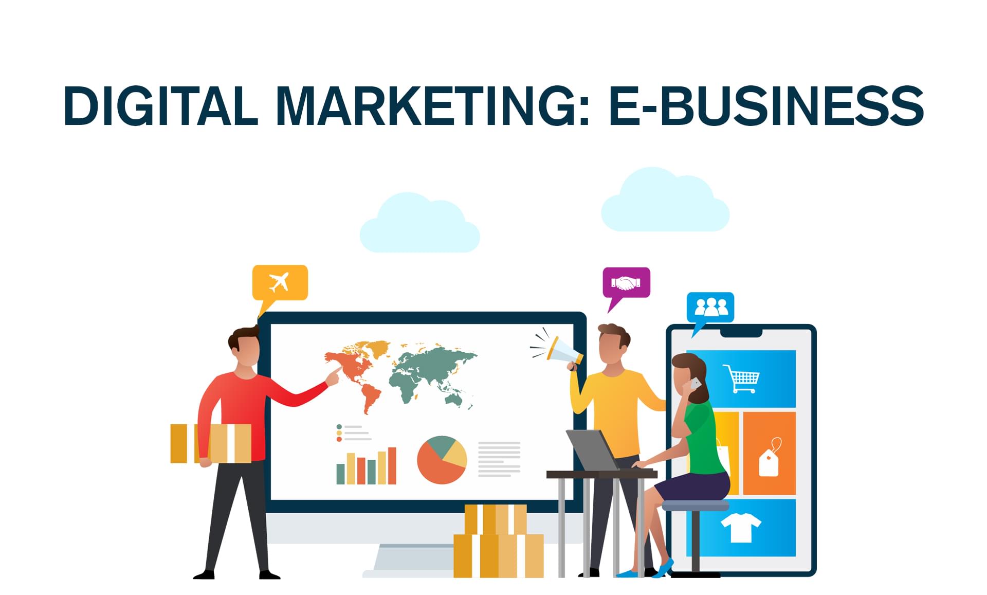 The term digital marketing suggests that to promote a particular product or service through numerous kinds of digital platforms via social media marketing, email, webinars, online consumer communities etc. with the aim of attaining a large number of customers. On the other hand, the term E-Business stands for (Electronic Business) which means conducting any business activity through online platforms with the use of various digital technologies and the internet. E-business is a vast concept that covers, e-sales, e-commerce, online communication or e-learning, and e-banking. In today's era, every business moves towards e-business to perform better with the help of various digital marketing technologies. As per the current analysis, most of the users prefer to purchase products from E-businesses rather than go to physical stores.